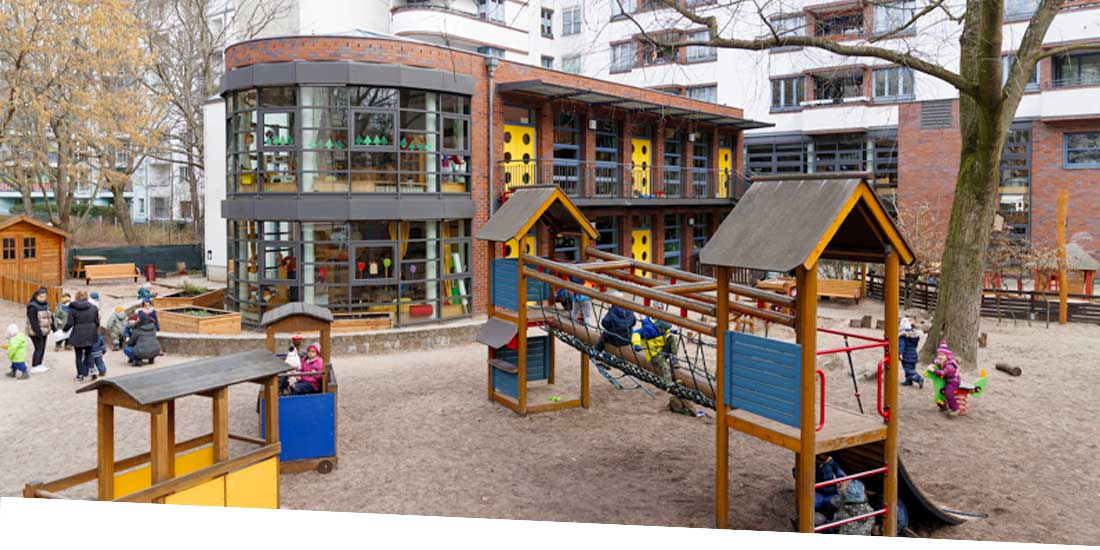 Unsere Kita Fantasia gehört zur Orte für Kinder GmbH, einem der größten Kita-Träger in Berlin. Die Kita befindet sich im Moabit unweit der Arminiusmarkthalle und fußläufig zwischen den U-Bahn-Stationen (U9) Turm- und Birkenstraße. Eine helle, lichtdurchflutete Kita mit bodentiefen Fenstern bietet Betreuung für 130 Kinder, die hier in altershomogenen Gruppen von festen Bezugserzieher:innen begleitet werden.